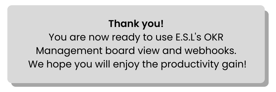 - In order to use ESL’s OKR Management integrations, you’ll have to get your boards ready